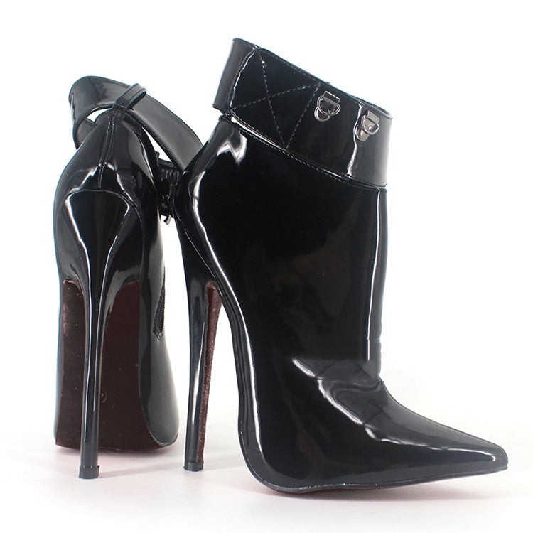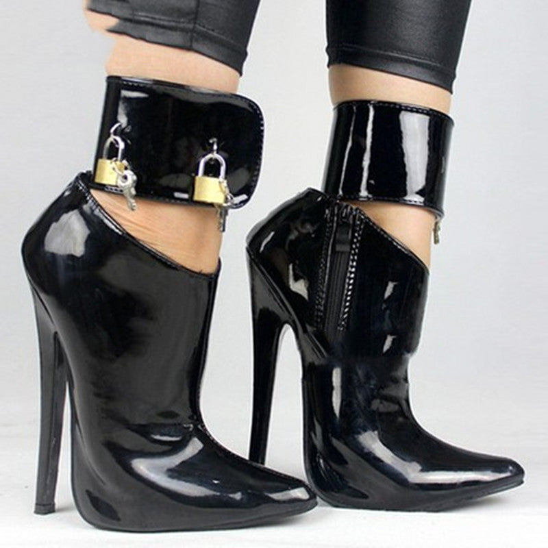 Women's stiletto high heel 18cm shoes, leather, ankle buckle with padlocks, very fetish and sexy