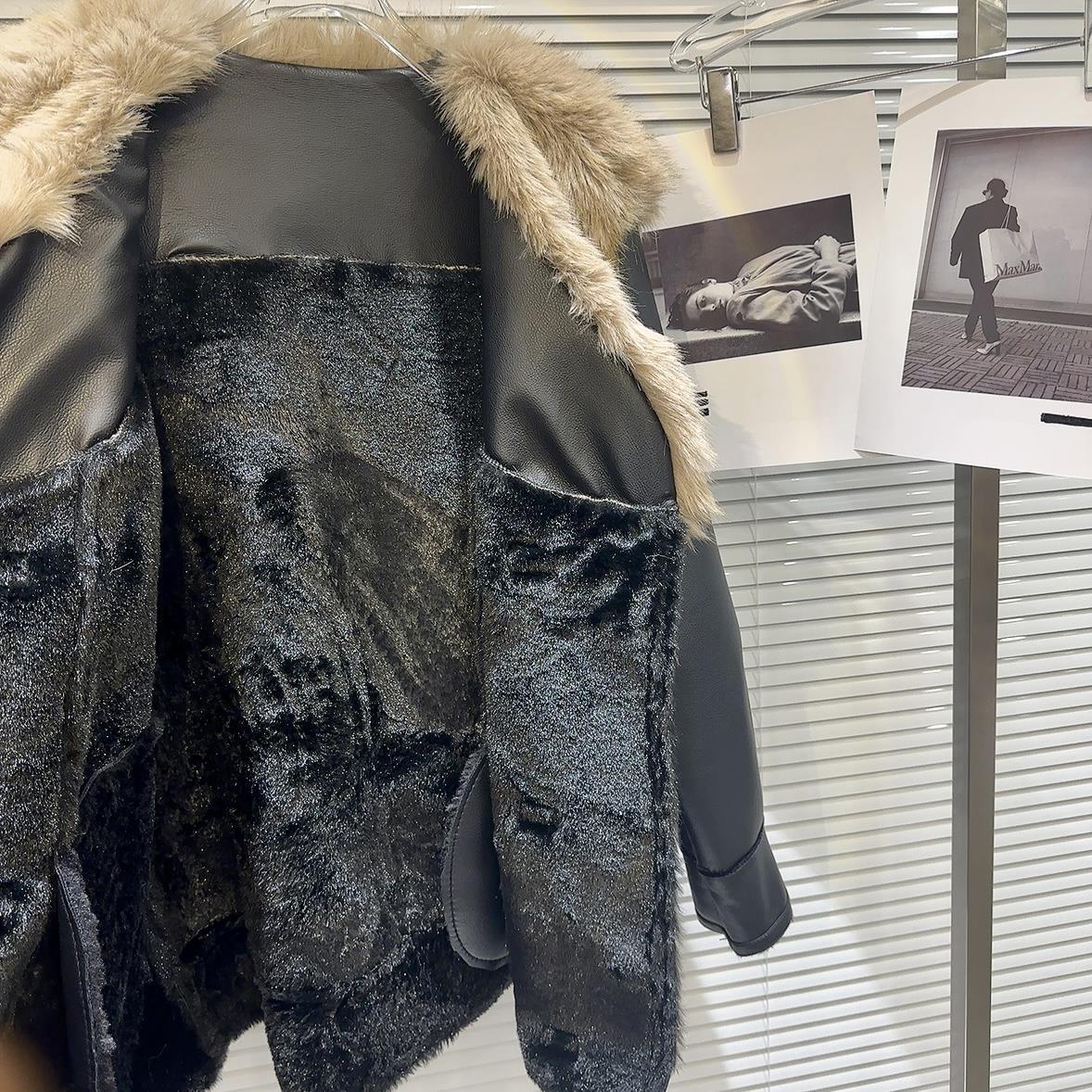 Giacca da donna in pelle con collo di pelliccia, lunghezza media