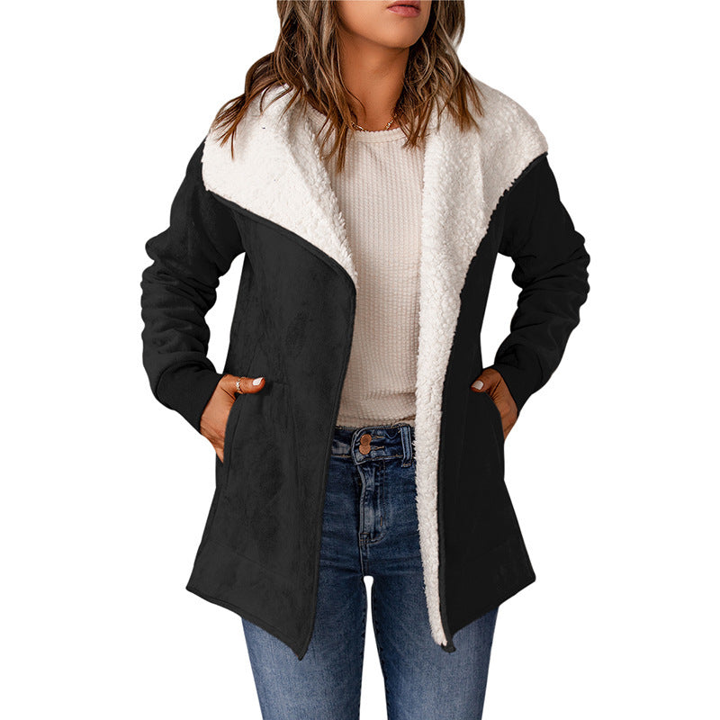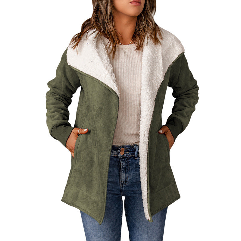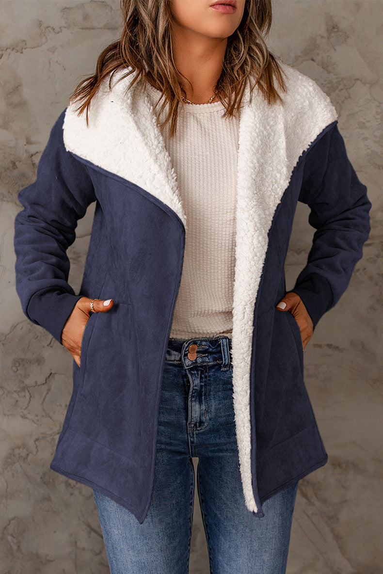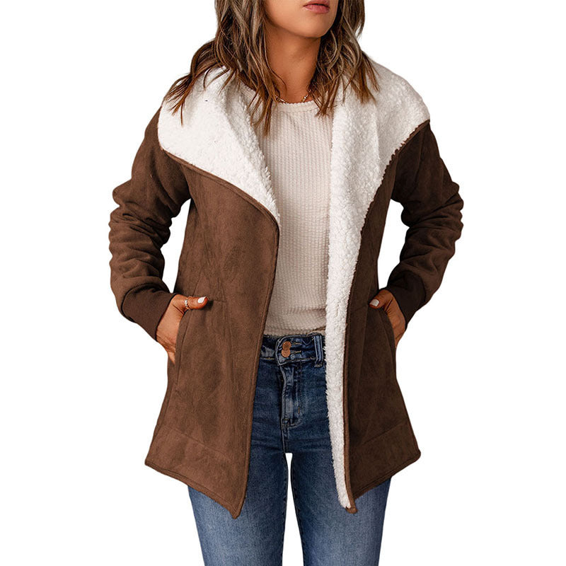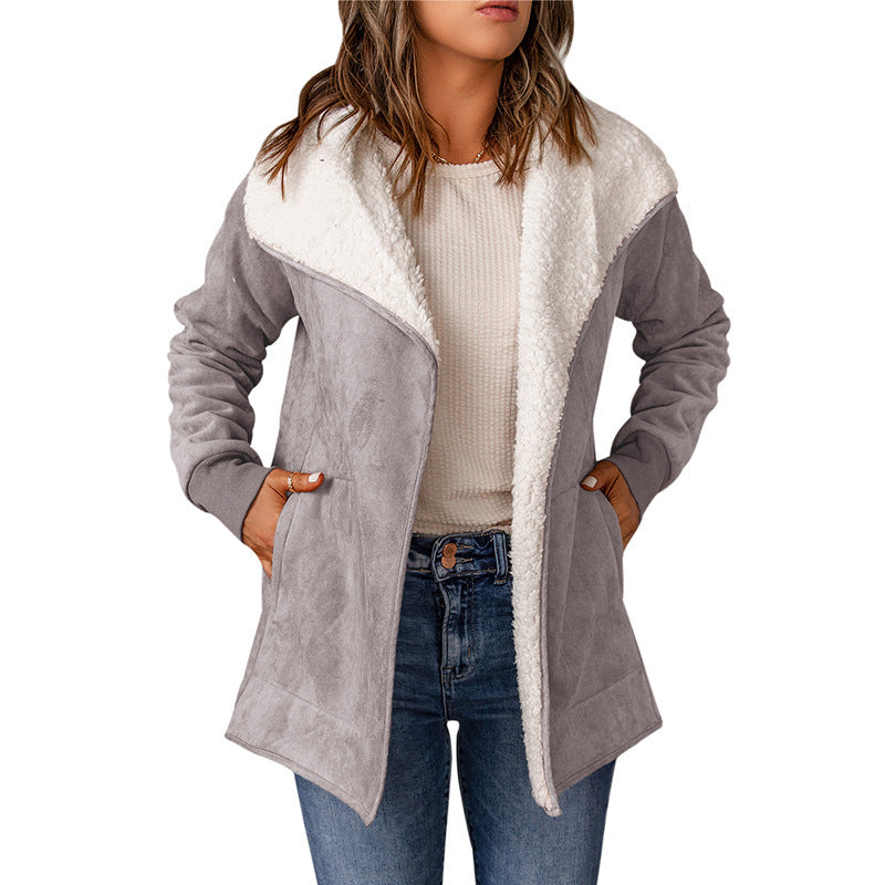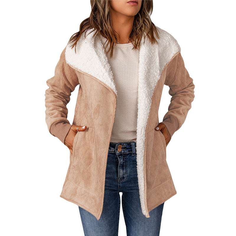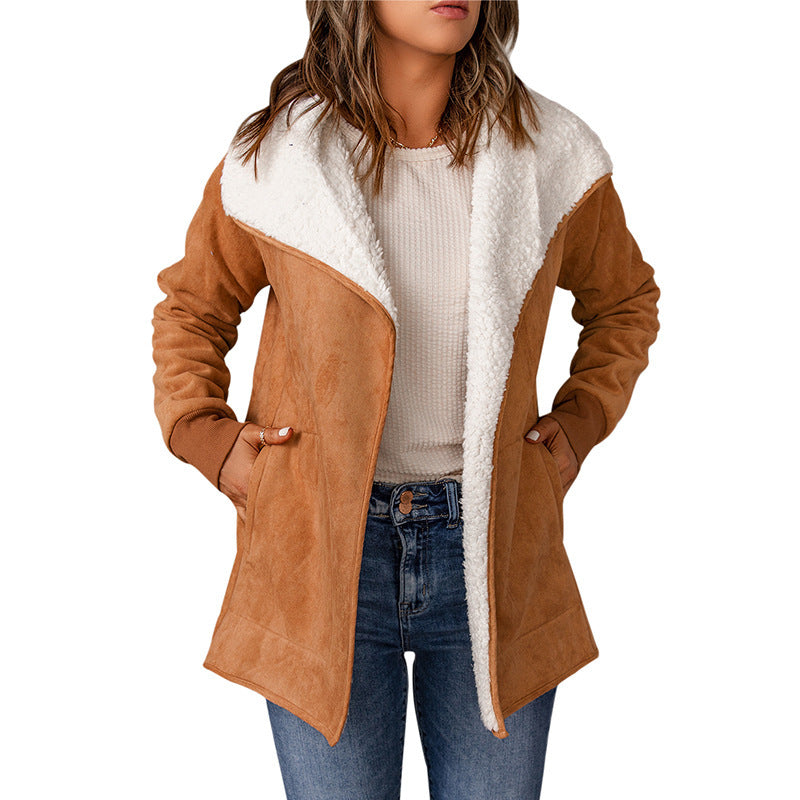 Giacca in pelle scamosciata, maniche lunghe, interno in pelliccia