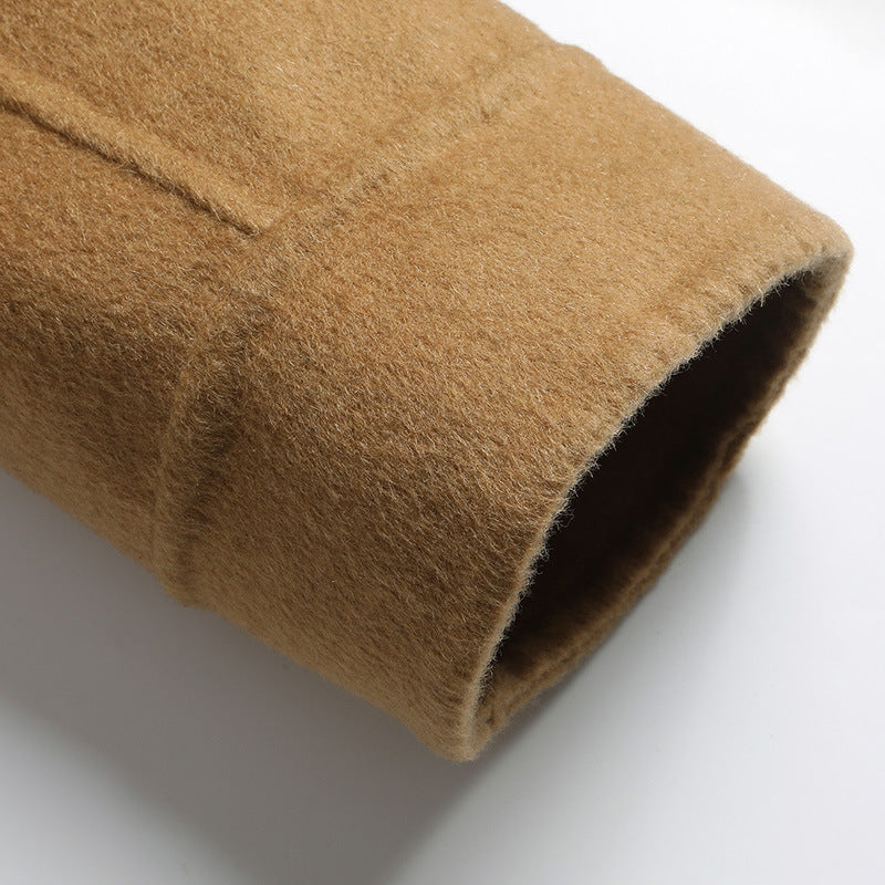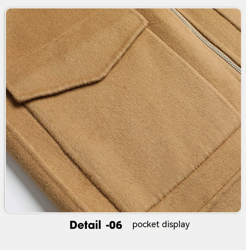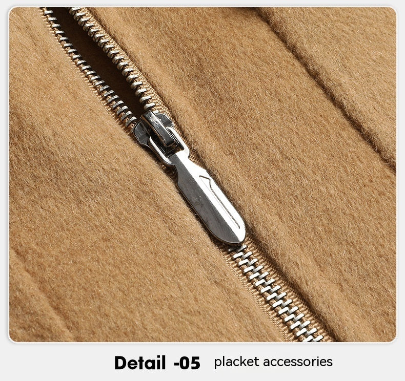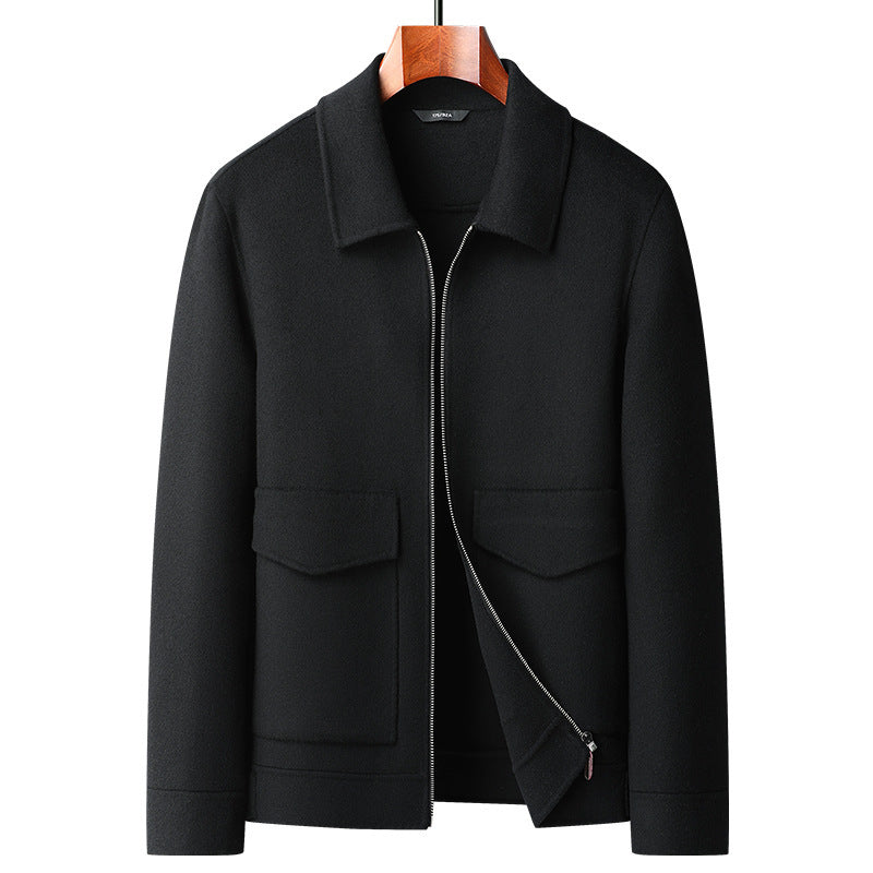 Giacca di lana double-face fatta a mano in lana con risvolto e chiusura a cerniera