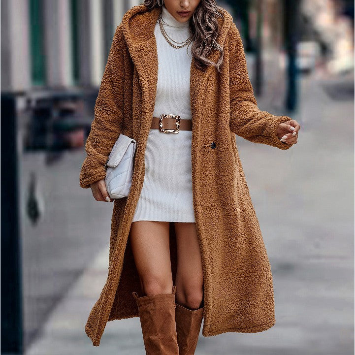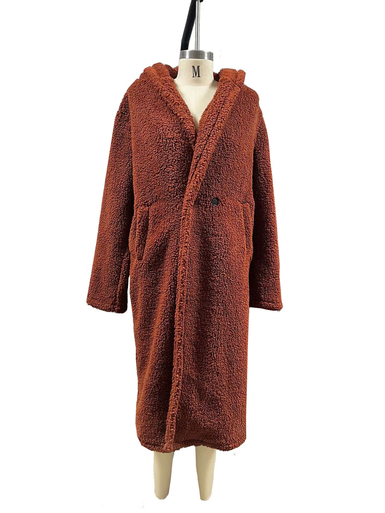 Cappotto da donna lungo in peluche a maniche lunghe con cappuccio