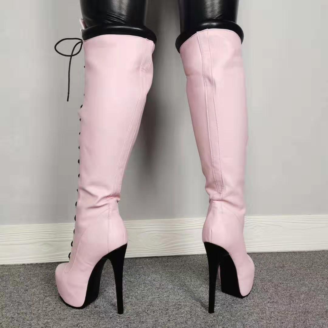 Sexy and casual women's boot with stiletto heel, front lace up and round toe